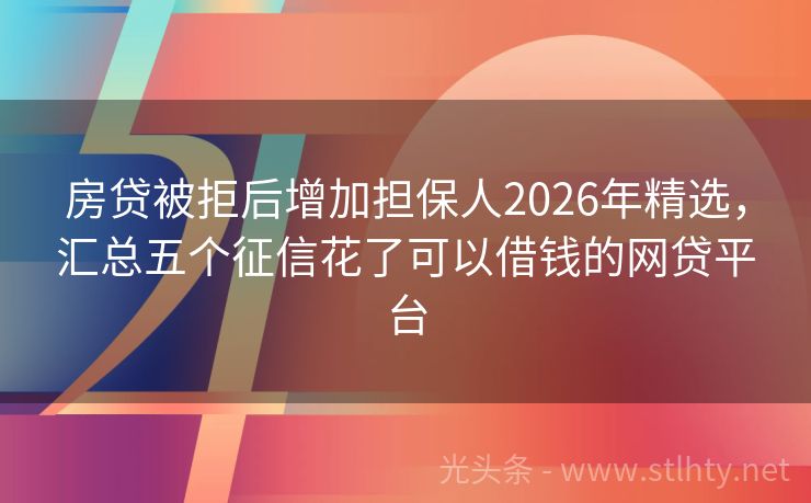 房贷被拒后增加担保人2026年精选,汇总五个征信花了可以借钱的网贷平台 在现代社会,网贷为我们提供了快速解决资金问题的便利。但随着越来越多的人频繁申请网贷或出现逾期,征信问题变得越来越严重,导致很多人申请贷款时面临“秒拒”局面。那么房贷被拒后增加担保人还能通过的借款的口子有哪些,本文探讨5个借款的口子。 2026年的房贷被拒后增加担保人有:星梦分期、易借宝速贷、易贷通宝...