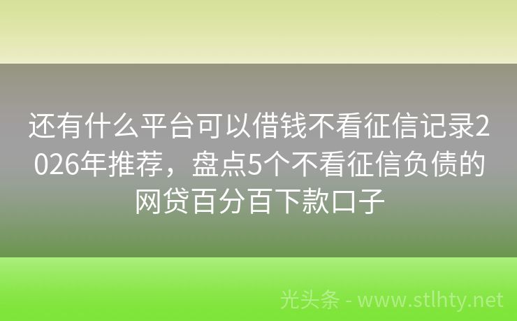 还有什么平台可以借钱不看征信记录2026年推荐,盘点5个不看征信负债的网贷百分百下款口子 “还有什么平台可以借钱不看征信记录?”这是许多借款者在面临信用问题时常有的疑问,即便有逾期记录,也有不少平台愿意为您提供借款服务,下面,就让我来为您推荐五个值得一试的还有什么平台可以借钱不看征信记录。 2026年的还有什么平台可以借钱不看征信记录有:钱贷乐、智享宝钱包、借款宝速贷宝、速下宝、同程提钱...