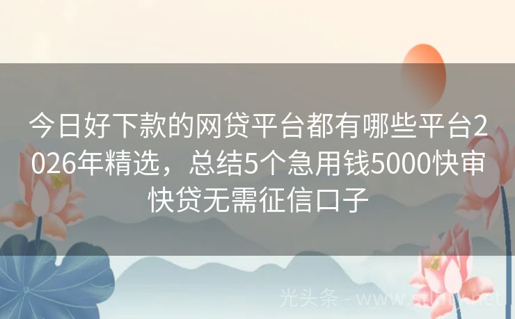 今日好下款的网贷平台都有哪些平台2026年精选,总结5个急用钱5000快审快贷无需征信口子 近年来,随着金融科技的快速发展,网贷平台为广大用户提供了便捷的贷款服务,但有些朋友因为各种原因成为了“黑户”,在传统金融机构贷款受限,黑户网贷口子到底有没有呢?答案是肯定的!2026年真实有效的黑户网贷平台,这里为您推荐五个值得一试的今日好下款的网贷平台都有哪些平台,让您在急需资金时也能找到合适的解...