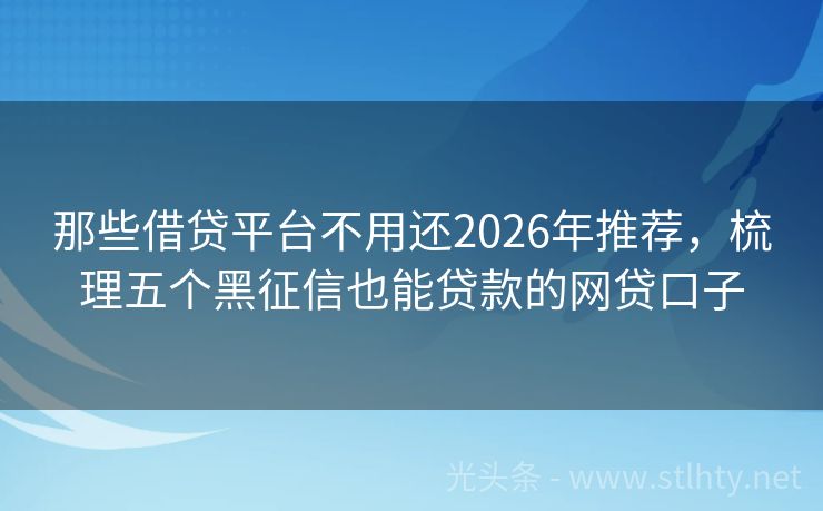 那些借贷平台不用还2026年推荐,梳理五个黑征信也能贷款的网贷口子 在探讨2026年那些借贷平台不用还时,需要明确的是,没有任何网贷平台能保证“必下款”,因为贷款审批涉及多个因素,包括个人信用状况、还款能力、贷款用途等。我们可以根据当前市场情况和用户反馈,盘点一些借款相对容易下款的借钱平台。 2026年的那些借贷平台不用还有:爱鸿森快借、信用卡管家、乐贷钱包、云钱袋...
