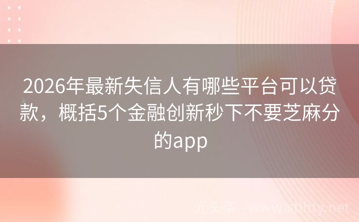 2026年最新失信人有哪些平台可以贷款,概括5个金融创新秒下不要芝麻分的app “征信花了,心里急,哪里可以借钱应急?别急,今天我就来给大家详细介绍几个靠谱的失信人有哪些平台可以贷款,帮您解决燃眉之急!以下五大平台,总有一款适合您。” 2026年的失信人有哪些平台可以贷款有:瑞雪贷、金瑞龙、瑞信钱包、小米分期宝、小油菜快贷等。 一、瑞雪贷 用户在瑞雪贷上申请借款,审批通过后,最...