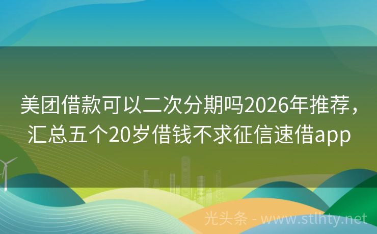 美团借款可以二次分期吗2026年推荐,汇总五个20岁借钱不求征信速借app 随着互联网技术的飞速发展,网上贷款已成为越来越多人的选择,网上贷款是否合法”,答案是肯定的,在我国,正规合法的网贷平台都在监管之下运营,为广大用户提供便捷、安全的金融服务,我就为大家推荐五个备受好评的美团借款可以二次分期吗,下面,我们一起来详细了解这些平台的额度、优势和特色服务。 2026年的美团借...