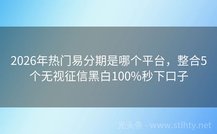 2026年热门易分期是哪个平台,整合5个无视征信黑白100%秒下口子 “易分期是哪个平台?”这是许多借款人在申请贷款时心中的疑问,即便征信记录不佳,也有一些网贷平台愿意为有需求的用户提供贷款服务,下面,就让我来为大家推荐五个信誉良好、服务优质的易分期是哪个平台,帮助你轻松解决资金问题。 2026年的易分期是哪个平台有:钱速达易、省时贷宝、现金易贷宝融途、现金秒借通、现...