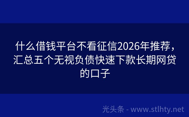 2026年最新最容易下款的贷款平台不看征信的正规平台,整合五个黑户0门槛贷款app “征信花了想贷款怎么办呢?”这是许多人在面临资金周转困难时的共同疑问,别担心,今天我就为大家推荐几个信誉良好、服务优质的最容易下款的贷款平台不看征信的正规平台,帮助大家解决燃眉之急。 2026年的最容易下款的贷款平台不看征信的正规平台有:现金秒借宝、紫晶信贷、钱速借融途、现金侠、现金贷易融宝等。 一...