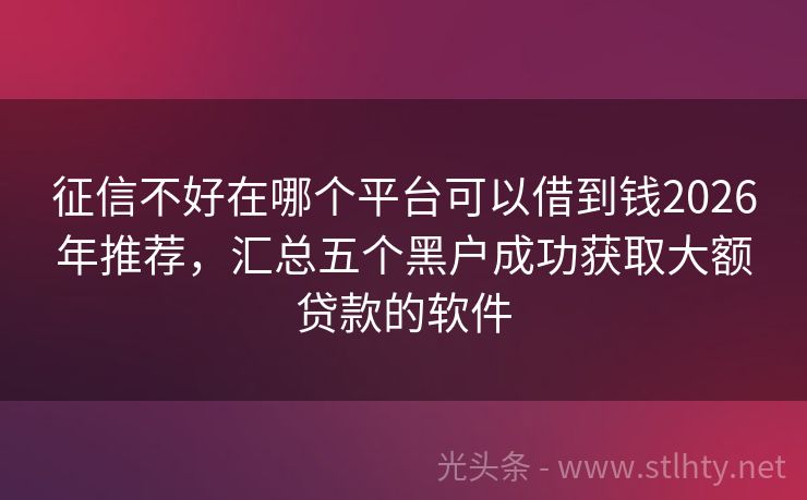 征信不好在哪个平台可以借到钱2026年推荐,汇总五个黑户成功获取大额贷款的软件 大家好!近年来,随着金融科技的快速发展,无门槛借钱平台层出不穷,为广大用户提供了一条便捷的融资渠道,我就来为大家详细介绍几个热门的无门槛征信不好在哪个平台可以借到钱,帮助大家解决资金周转的难题,下面,让我们一起来看看这些征信不好在哪个平台可以借到钱吧! 2026年的征信不好在哪个平台可以借到钱有:乐...