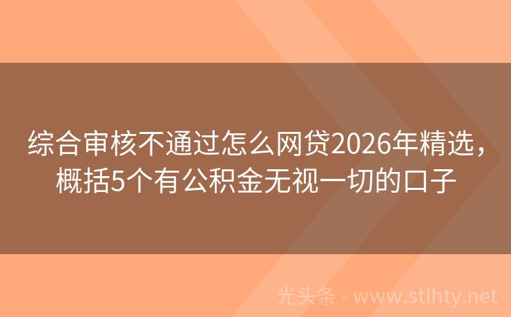 综合审核不通过怎么网贷2026年精选,概括5个有公积金无视一切的口子 汇集五个优质综合审核不通过怎么网贷,轻松解决燃眉之需。无需繁琐审核,直击需求核心,让你的资金缺口瞬间填满。效率与信赖同在,把握每一个瞬间,迎接生活的每一项挑战。 2026年的综合审核不通过怎么网贷有:金瑞快借、安逸花、易借宝、现金直融、小油菜P2P等。 一、金瑞快借 金瑞快借是黑白户无需征信的小额贷...