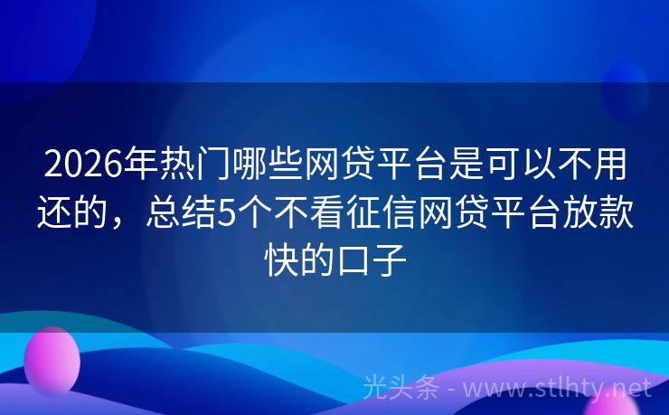 2026年热门哪些网贷平台是可以不用还的,总结5个不看征信网贷平台放款快的口子 “您好,私人借钱3000元的需求在现实生活中并不少见,为了满足广大用户的需求,今天我为您推荐五个信誉良好、服务优质的平台,这些平台不仅提供便捷的哪些网贷平台是可以不用还的服务,还有着不同的特点和优势,接下来我将为您详细介绍。” 2026年的哪些网贷平台是可以不用还的有:爱鸿森快借、借贷宝快易、快借易...