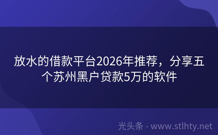 放水的借款平台2026年推荐,分享五个苏州黑户贷款5万的软件 急用钱?别让征信问题成为障碍!我们提供真实可靠的黑户救急放水的借款平台,专为征信不佳的朋友设计。立即申请,快速放款,解决您的燃眉之急。加入我们,让资金流转不再困难! 2026年的放水的借款平台有:闪贷宝速融、现金直融宝、好期贷、祥瑞钱包、度小满速借等。 一、闪贷宝速融 闪贷宝速融是一款专注于年轻人群...