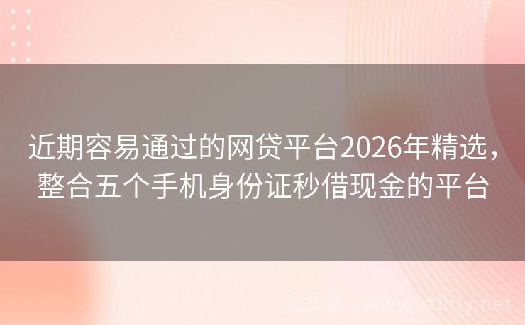 近期容易通过的网贷平台2026年精选,整合五个手机身份证秒借现金的平台 “黑户”一词在金融领域通常指的是信用记录不良或无法提供有效信用记录的用户,但在现实生活中,有时因为这些用户也需要资金周转,黑户哪里可以借1万元”就成了他们关注的焦点,就让我来为大家推荐几个专为这类用户设计的近期容易通过的网贷平台,助你解决资金难题。 2026年的近期容易通过的网贷平台有:现金分期宝、...