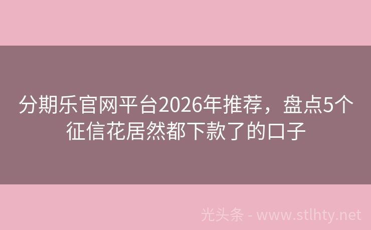 分期乐官网平台2026年推荐,盘点5个征信花居然都下款了的口子 急需资金周转?这里有五个优选分期乐官网平台,额度高、利息低、申请便捷。 2026年的分期乐官网平台有:掌上贷、易融贷宝盒、借款宝易贷、现金易、现金秒到宝等。 一、掌上贷 掌上贷是最可靠的小额贷款直接到账,额度最高20万元,日利率万分之三,适合有稳定工作的工薪族用户,现在有工资卡和公积金认证提额通道,...