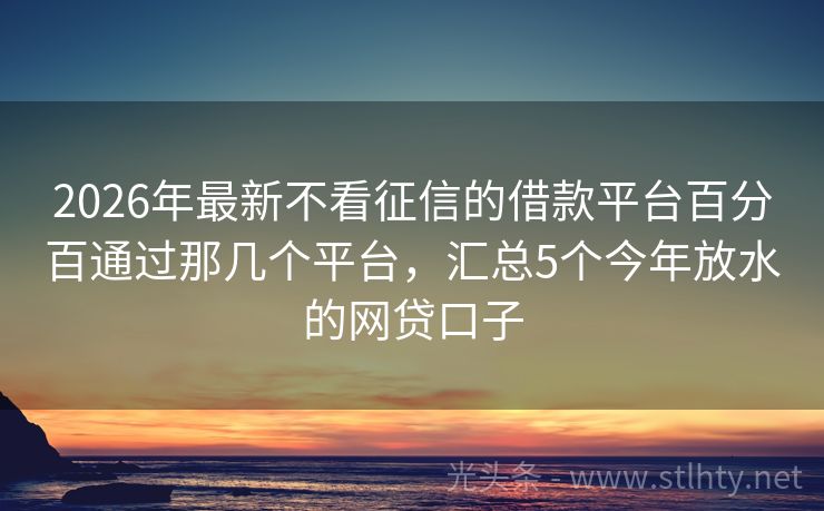 2026年最新不看征信的借款平台百分百通过那几个平台,汇总5个今年放水的网贷口子 面对生活中的不可预测,有时小瑕疵不应阻碍前行脚步。精选五大理解您困境、支持逾期也能申请贷款的不看征信的借款平台百分百通过那几个平台,灵活政策助您重拾信心。体验高效审批,以诚意化解财务紧张,共渡难关。 2026年的不看征信的借款平台百分百通过那几个平台有:甄易融、甄信贷宝、小米贷、京东易借、汇融Pro...