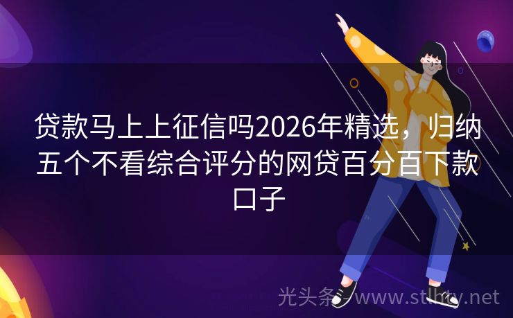 贷款马上上征信吗2026年精选,归纳五个不看综合评分的网贷百分百下款口子 “贷款马上上征信吗?这可不是天方夜谭!在众多网贷平台中,有一些专为有贷款需求的‘黑户’群体提供了机会,就让我来为大家详细介绍几个这样的贷款马上上征信吗,让你在急需资金时也能找到解决问题的途径。” 2026年的贷款马上上征信吗有:瞬贷通、钱袋速借、玛瑙分期、现金侠途、应急贷等。 一、瞬贷通 瞬贷通征信...