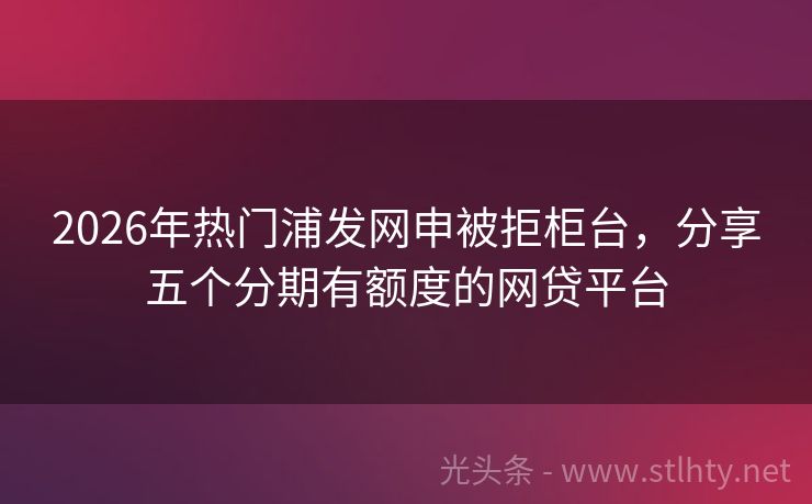 2026年热门浦发网申被拒柜台,分享五个分期有额度的网贷平台 急需资金?试试这5个不看征信、下款快的浦发网申被拒柜台!轻松借款,无需等待,让你快速解决资金难题。现在就申请,让财务自由不再遥远! 2026年的浦发网申被拒柜台有:借款宝快融通宝、汇金钱包、好期贷、美团闪借、金瑞快借等。 一、借款宝快融通宝 借款宝快融通宝分期是一款消费分期产品,由年轻白领人群推出。...