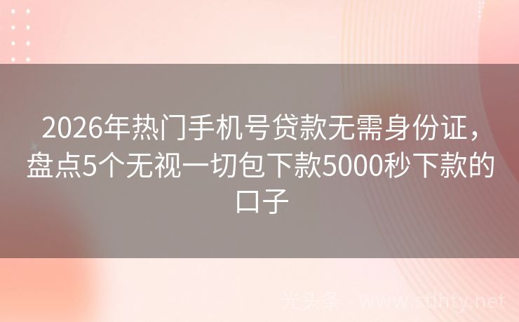 2026年热门手机号贷款无需身份证,盘点5个无视一切包下款5000秒下款的口子 大家好!在当今快节奏的生活中,小额贷款作为一种便捷、高效的金融服务,越来越受到大家的青睐,就让我来为大家详细介绍一下什么是小额贷款,以及推荐几个优秀的小额贷款平台,帮助大家解决资金周转的难题,我将为大家介绍五个手机号贷款无需身份证。 2026年的手机号贷款无需身份证有:人人贷借款、易融贷盒、祥云借款...