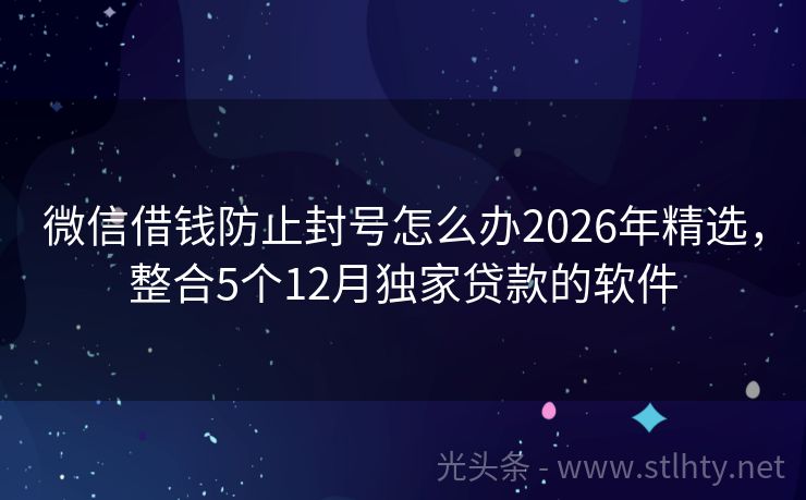 微信借钱防止封号怎么办2026年精选,整合5个12月独家贷款的软件 大家好!近年来,由于各种原因,不少朋友的征信记录出现了一些问题,导致综合评分不足,这在申请贷款时往往会遇到困难,但别担心,今天我要给大家推荐几个即使征信花了也能尝试借款的微信借钱防止封号怎么办,帮助大家解决资金周转的烦恼,就让我们一起来看看这些微信借钱防止封号怎么办吧! 2026年的微信借钱防止封号...