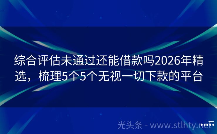 综合评估未通过还能借款吗2026年精选,梳理5个5个无视一切下款的平台 “全部秒拒,心里是不是有点凉凉的感觉?别急,今天我来给大家介绍几个综合评估未通过还能借款吗,让你重新找回借款的信心!就让我们一起来看看这几个热门的借款平台,它们不仅门槛低,审批速度快,而且额度、服务都相当给力!” 2026年的综合评估未通过还能借款吗有:信秒贷、钱进快贷、现金易借宝、闪贷通、易贷宝速...