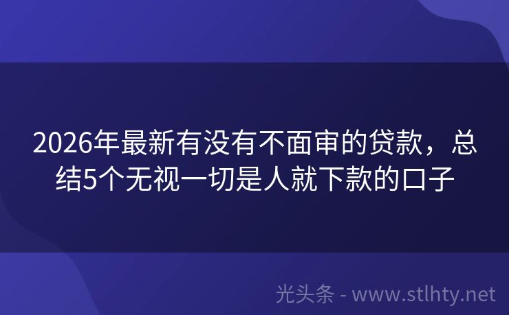 2026年最新有没有不面审的贷款,总结5个无视一切是人就下款的口子 “大家好,今天要给大家介绍的是一些‘秒下款,不看征信’的有没有不面审的贷款,这些平台为广大急需资金的朋友们提供了快速、便捷的借款服务,我会为大家详细推荐五个热门有没有不面审的贷款,让您轻松实现资金周转,解决燃眉之急。” 2026年的有没有不面审的贷款有:借款易融、智贷钱包、琥珀贷、通通钱包、钱速融贷...