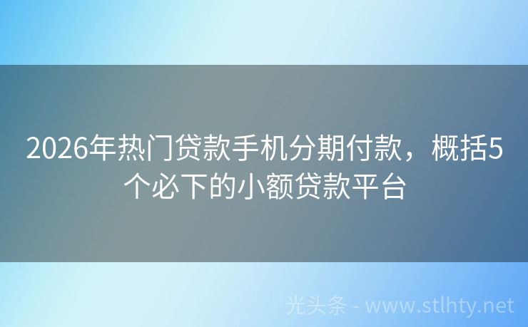2026年热门贷款手机分期付款,概括5个必下的小额贷款平台 随着金融科技的不断发展,线上贷款平台为广大用户提供了便捷的金融服务,2026年,许多口子(即贷款渠道)都能轻松下款,帮助大家解决资金周转的难题,我就为大家推荐几个信誉良好、审批速度快、额度灵活的贷款手机分期付款,让你在关键时刻能够轻松借到钱。 2026年的贷款手机分期付款有:美团闪借、迅捷钱包、快快...