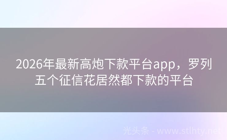 最新高炮能下款的软件2026年推荐,总结5个芝麻分负面借款的口子 “最新高炮能下款的软件?”这是许多借款者在选择网贷平台时最关心的问题,就让我来为大家详细介绍一下国内几个较为知名的网贷平台,帮助大家找到最适合自己需求的最新高炮能下款的软件。 2026年的最新高炮能下款的软件有:借贷易行、迅捷钱包、钱速借宝融、新浪易借、快捷宝贷融等。 一、借贷易行 借贷易行贷款额度...