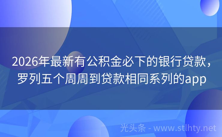 2026年最新有公积金必下的银行贷款,罗列五个周周到贷款相同系列的app 别让征信成为绊脚石!我们精选5个不看征信的有公积金必下的银行贷款,助您轻松解决资金难题。无论当前逾期情况如何,都能为您开启下款通道。选择我们,让贷款更简单、更快捷! 2026年的有公积金必下的银行贷款有:借款宝易借、瞬信贷宝、唯品花取现、鑫融钱包、速贷宝盒等。 一、借款宝易借 借款宝易借也是不太看重...