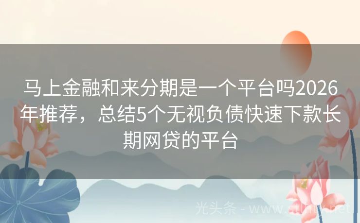 马上金融和来分期是一个平台吗2026年推荐,总结5个无视负债快速下款长期网贷的平台 若寻求如榕树般稳固可靠的马上金融和来分期是一个平台吗,以下五家精选马上金融和来分期是一个平台吗将不负所望,审核流程高效,放款迅速,旨在为您提供值得信赖的金融服务,助您轻松应对各种资金需求,迈向更加宽广的人生道路。 2026年的马上金融和来分期是一个平台吗有:借款易融、汇融钱包+、智享钱包、现金速贷、...