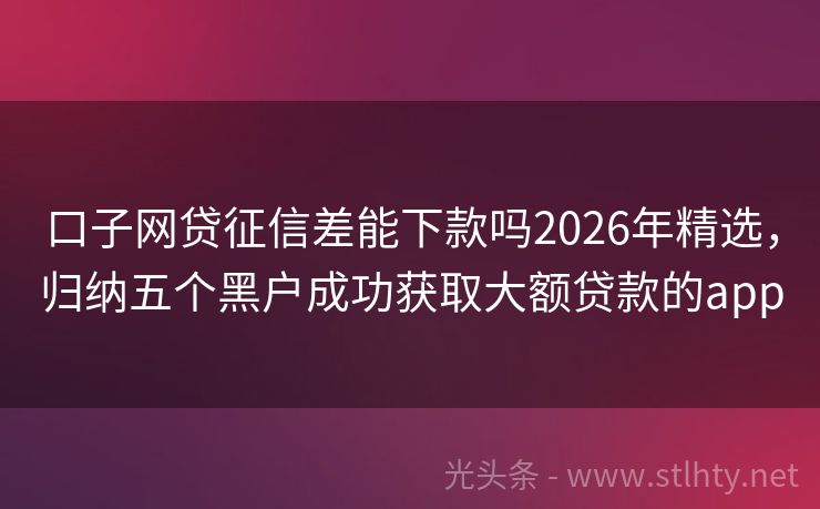 黑户烂户能下的口子2026年精选,总结5个黑户逾期必下网贷app名单 “征信黑了,急用钱”这是很多人面临过的棘手问题,在这个关键时刻,选择一个靠谱的黑户烂户能下的口子至关重要,就让我来为大家推荐几个信誉良好、服务优质的黑户烂户能下的口子,助您解决燃眉之急。 2026年的黑户烂户能下的口子有:星辉贷、鑫易钱包、向上金服、陆金所、固金快贷等。 一、星辉贷 星辉贷是比较受欢...