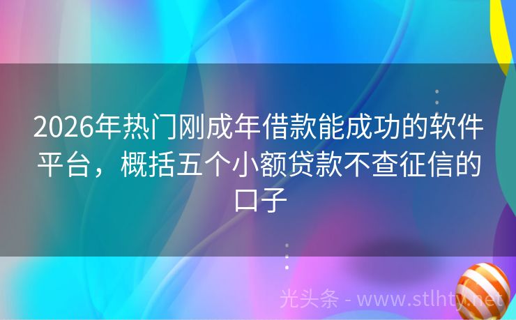 2026年热门刚成年借款能成功的软件平台,概括五个小额贷款不查征信的口子 在这个快节奏的时代,资金周转成为了许多人关注的焦点,就为大家推荐几款“刚成年借款能成功的软件平台”,让您在急需资金时,轻松解决燃眉之急,以下五大平台,不仅额度高、审批快,而且服务贴心,让您借钱无忧! 2026年的刚成年借款能成功的软件平台有:钱速借宝、现金侠易借宝、小麦粒贷、小金鹤、快借易贷宝等。 ...