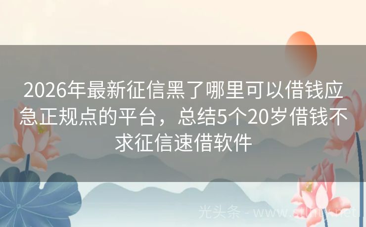 2026年最新征信黑了哪里可以借钱应急正规点的平台,总结5个20岁借钱不求征信速借软件 嘿,各位年轻的朋友们,是不是在为学业、创业或是生活中的突发状况急需一笔资金呢?别担心,现在市面上有很多专门为学生提供借款的平台,我就来给大家详细介绍几个热门的征信黑了哪里可以借钱应急正规点的平台,帮你们解决资金难题,咱们就一起看看这五个平台的具体情况吧! 2026年的征信黑了哪里可以借钱应急正规点的...