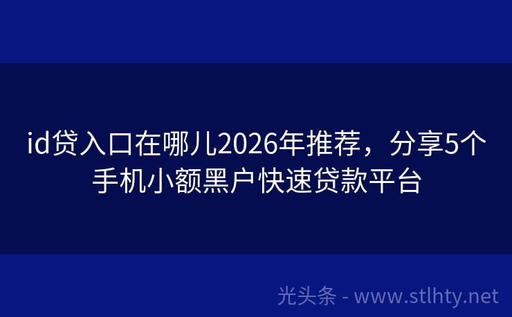 id贷入口在哪儿2026年推荐,分享5个手机小额黑户快速贷款平台 “大家好,最近有朋友私信问我,‘id贷入口在哪儿’,其实这个问题困扰着不少有信贷需求的朋友,我就来给大家推荐几个信誉良好、服务优质的平台,帮助大家解决资金周转的难题,下面,我将详细介绍五个热门平台,它们各有特色,总有一款适合你。” 2026年的id贷入口在哪儿有:民贷天下、现金秒借、易融贷通宝、钱速...