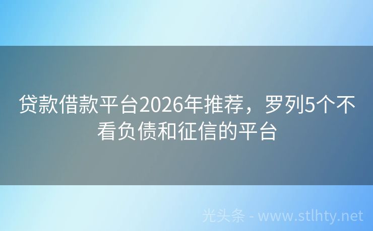 贷款借款平台2026年推荐,罗列5个不看负债和征信的平台 近年来,借钱平台层出不穷,其中很多人脸识别的技术应用让人倍感便捷,但也有人担心隐私问题,不禁要问:“不用人脸识别的借钱平台合法吗?”答案是肯定的,就让我来为大家推荐几个无需人脸识别的贷款借款平台,让您在享受便捷服务的同时,也能安心借钱。 2026年的贷款借款平台有:月月盈贷、玛瑙分期、借款易融宝、小...