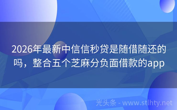 2026年最新中信信秒贷是随借随还的吗,整合五个芝麻分负面借款的app 即使征信花,也有出路!这5个中信信秒贷是随借随还的吗直接放款,不让你等待。快来体验,轻松解决资金难题,让生活更从容! 2026年的中信信秒贷是随借随还的吗有:人人快借、借款宝速贷宝、钱速借易行、现金侠快借融、借款宝快贷通等。 一、人人快借 人人快借想要申请人人快借需要申请人年龄在22-55周岁之间,...