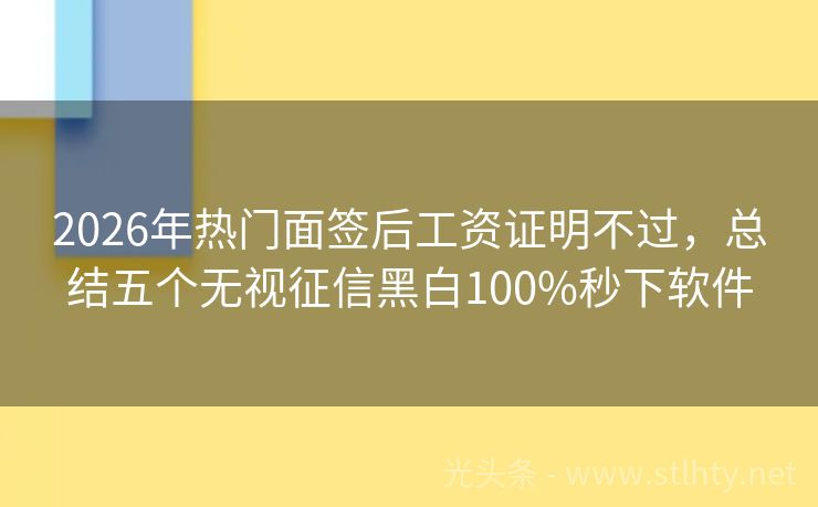 2026年热门面签后工资证明不过,总结五个无视征信黑白100%秒下软件 “征信黑花了,急需用钱,心里是不是有点慌?别担心,今天我就来给您推荐几个靠谱的借钱平台,让您在关键时刻能解燃眉之急,下面这几个面签后工资证明不过,门槛低,额度高,服务好,还能让您在征信有问题的情况下,也能顺利借到钱。” 2026年的面签后工资证明不过有:现金秘书、鑫悦钱包、滴水易贷、信贷宝贷、借钱宝...
