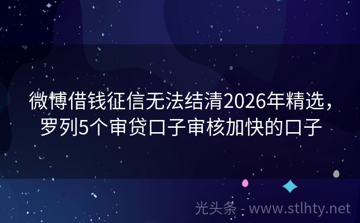 微博借钱征信无法结清2026年精选,罗列5个审贷口子审核加快的口子 随着金融科技的不断发展,线上贷款平台为广大用户提供了便捷的金融服务,2026年,许多口子(即贷款渠道)都能轻松下款,帮助大家解决资金周转的难题,我就为大家推荐几个信誉良好、审批速度快、额度灵活的微博借钱征信无法结清,让你在关键时刻能够轻松借到钱。 2026年的微博借钱征信无法结清有:天天盈、现金秒贷...