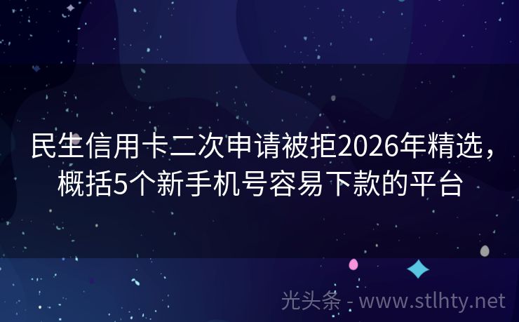 民生信用卡二次申请被拒2026年精选,概括5个新手机号容易下款的平台 “大家好,今天咱们聊一聊“民生信用卡二次申请被拒”这个话题,在现实生活中,很多朋友因为征信记录不佳,想要贷款买车时遇到了难题,不用担心,今天我为大家推荐五个的民生信用卡二次申请被拒,它们专为有征信问题的用户提供服务,帮助大家顺利实现购车梦,让我们一起来看看这五个平台的具体情况吧!” 2026年的民生...