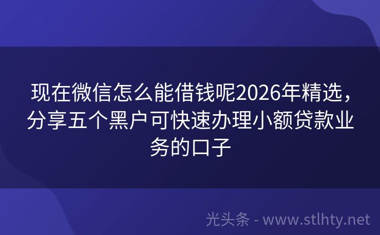 现在微信怎么能借钱呢2026年精选,分享五个黑户可快速办理小额贷款业务的口子 “大家好,今天我来给大家介绍一种不需要征信的小额度贷款,让您在急需用钱时,能够快速、便捷地解决问题,不用征信的小额度贷款,让您轻松应对各种突发情况,下面我将为您推荐五个现在微信怎么能借钱呢,让您有更多的选择。” 2026年的现在微信怎么能借钱呢有:京东金融、融通宝钱包、信秒贷、现金侠易借、现金盒子等...
