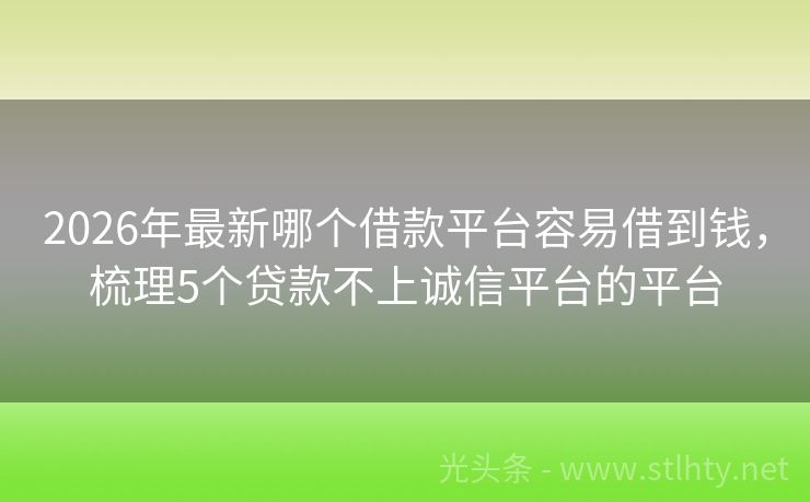 2026年最新哪个借款平台容易借到钱,梳理5个贷款不上诚信平台的平台 急需资金周转?别让负债大数据花困扰你!我们汇总了5个审核宽松、下款迅速的哪个借款平台容易借到钱,助你轻松解决资金难题。无论你的信用状况如何,这里都有适合你的解决方案。快来试试吧! 2026年的哪个借款平台容易借到钱有:钱速达、金满堂贷、哆来咪钱包、钱贷乐借、安心贷宝等。 一、钱速达 钱速达是可以快速...