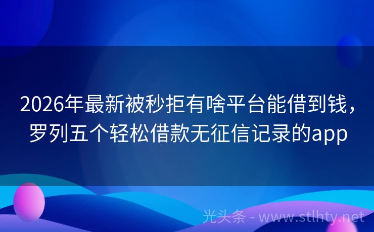 2026年最新被秒拒有啥平台能借到钱,罗列五个轻松借款无征信记录的app 在如今这个快节奏的社会,“被秒拒有啥平台能借到钱”已经成为了许多人的口头禅。无论是突发状况还是计划内的支出,资金短缺总是让人头疼。不过别担心,我为大家准备了几家正规、可靠的借贷平台推荐,它们额度灵活、审批快速,让你在需要资金的时候,能够迅速得到帮助。 2026年的被秒拒有啥平台能借到钱有:快融金、随...