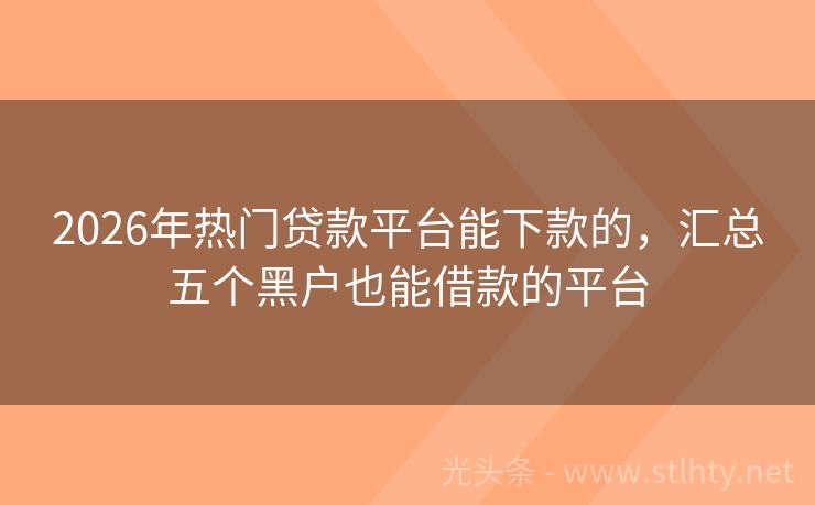 2026年热门贷款平台能下款的,汇总五个黑户也能借款的平台 随着科技的不断发展,手机贷款已经成为现代生活中不可或缺的一部分,在众多贷款平台中,选择一个安全可靠、利息低的平台至关重要,我们就来聊聊“手机贷款哪个平台最安全可靠利息低”,为大家推荐五个值得信赖的贷款平台能下款的。 2026年的贷款平台能下款的有:钱速融宝、石榴钱包、小麦粒借款、贷你无忧、度小满速借...