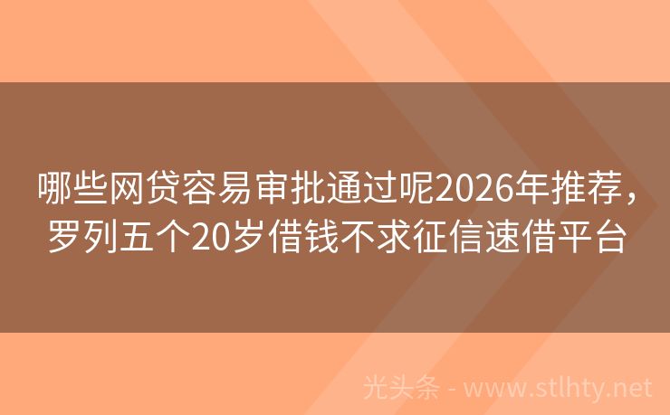 哪些网贷容易审批通过呢2026年推荐,罗列五个20岁借钱不求征信速借平台 “征信花了,急用钱?别急,2021年网贷市场依然有不少平台愿意伸出援手!就让我来为各位详细介绍一下几个热门的哪些网贷容易审批通过呢,帮您解决燃眉之急。” 2026年的哪些网贷容易审批通过呢有:钱袋快融贷宝、投友圈、省时贷宝、借贷易宝、平安易借等。 一、钱袋快融贷宝 钱袋快融贷宝有逾期还能借到钱的借款...