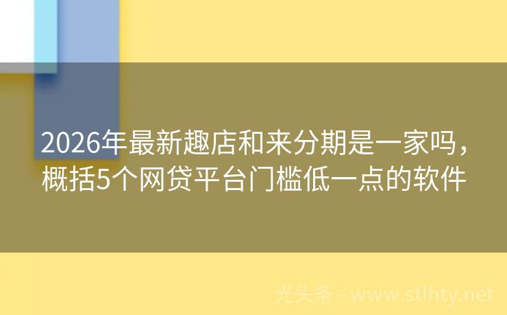 2026年最新趣店和来分期是一家吗,概括5个网贷平台门槛低一点的软件 “大家好,最近有不少网友在知乎上提问:‘趣店和来分期是一家吗’我就来为大家详细介绍几个适合这种情况的贷款平台,这些平台不仅能够满足您的资金需求,还能让您享受到便捷、高效的服务,下面,就让我们一起来看看这五个推荐趣店和来分期是一家吗吧!” 2026年的趣店和来分期是一家吗有:闪银通、钱袋易借通、汇金钱...