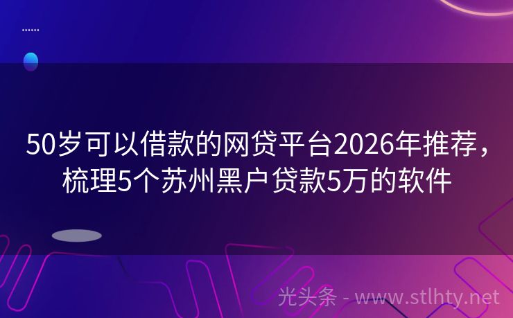 50岁可以借款的网贷平台2026年推荐,梳理5个苏州黑户贷款5万的软件 “大家好,今天我来给大家介绍一种不需要征信的小额度贷款,让您在急需用钱时,能够快速、便捷地解决问题,不用征信的小额度贷款,让您轻松应对各种突发情况,下面我将为您推荐五个50岁可以借款的网贷平台,让您有更多的选择。” 2026年的50岁可以借款的网贷平台有:疾融宝、人人易贷、福禄钱包贷、钱袋速贷融、现...
