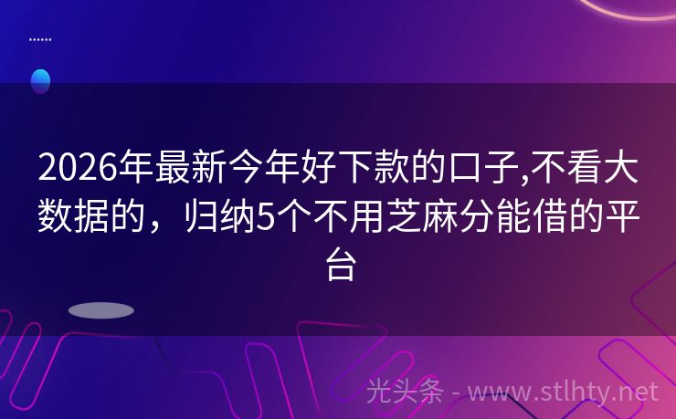 2026年最新今年好下款的口子,不看大数据的,归纳5个不用芝麻分能借的平台 “各位朋友们,是不是因为频繁申请贷款而被拒,急用钱却又不知道该怎么办?别担心,今天我就来给大家推荐几个信誉好、服务优的今年好下款的口子,不看大数据的,让你轻松解决资金问题!就让我们一起来看看这些今年好下款的口子,不看大数据的吧!” 2026年的今年好下款的口子,不看大数据的有:洋洋花呗通、琥珀贷、森...