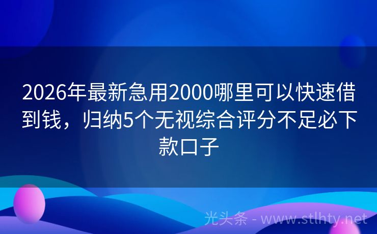 2026年最新急用2000哪里可以快速借到钱,归纳5个无视综合评分不足必下款口子 急需用钱?找急用2000哪里可以快速借到钱!不看征信,秒批秒放,轻松解决资金难题! 2026年的急用2000哪里可以快速借到钱有:甄宝借、口袋金贷、现金借款宝、省呗借款、钱速借易行等。 一、甄宝借 甄宝借您可以使用信用卡或支付宝的花呗来分期购买手机额度可以循环使用,借款流程简便,甄宝借随还,非常方便...