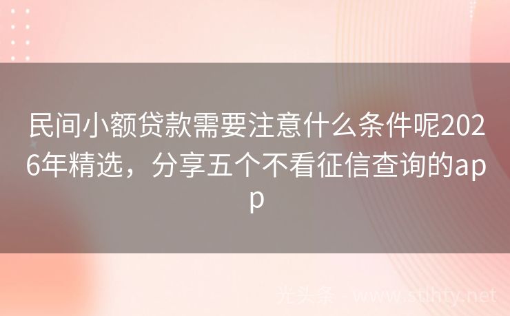 民间小额贷款需要注意什么条件呢2026年精选,分享五个不看征信查询的app 面对网贷逾期困境,急需资金周转?别急,这里有5个对征信要求不高、审核宽松的民间小额贷款需要注意什么条件呢推荐给您! 2026年的民间小额贷款需要注意什么条件呢有:爱鸿森、便捷Pro钱包、快易贷宝盒、现金流速借、超人卡等。 一、爱鸿森 爱鸿森是容易下款的贷款平台之一,隶属于湖北消费金融公司。借款额度在...