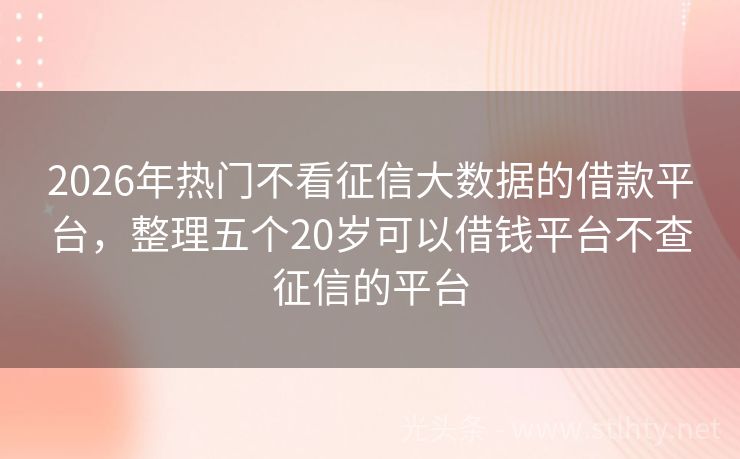 2026年热门不看征信大数据的借款平台,整理五个20岁可以借钱平台不查征信的平台 “在这个快节奏的时代,资金周转的需求时常出现,‘不看征信大数据的借款平台’成了许多人关心的问题,我就来为大家推荐几个信誉良好、审批快速的借款平台,让您在关键时刻能够轻松解决资金问题。” 2026年的不看征信大数据的借款平台有:借款宝速贷宝、超爱速借、微粒贷、祥云借款、爱木财富等。 一、借款宝速贷宝 ...