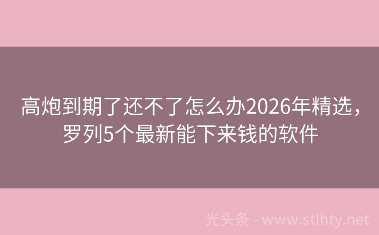 高炮到期了还不了怎么办2026年精选,罗列5个最新能下来钱的软件 近年来,随着金融科技的不断发展,越来越多的朋友开始关注并选择高炮到期了还不了怎么办进行投资或借款,尤其是对于那些被称为“黑户口子”的群体,他们往往因为各种原因难以在传统金融机构获得贷款服务,我就来为大家推荐几个适合65岁以上人群的高炮到期了还不了怎么办,帮助大家解决资金需求,实现财富增值。 2026...