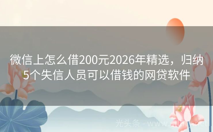 微信上怎么借200元2026年精选,归纳5个失信人员可以借钱的网贷软件 在面临信用挑战时,获取贷款似乎遥不可及。然而,我们甄选出五家专门为黑户设计的微信上怎么借200元,承诺快速审批,即时放款,为困境中的您点亮希望之光。那么网上黑户贷款秒下微信上怎么借200元可靠吗?整理5个真正黑户能下款的微信上怎么借200元。 2026年的微信上怎么借200元有:金诺Pro钱包、维信...