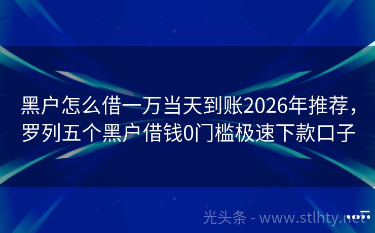 黑户怎么借一万当天到账2026年推荐,罗列五个黑户借钱0门槛极速下款口子 征信不佳也能轻松借!我们精选5大黑户怎么借一万当天到账,审核宽松,快速下款,解您燃眉之急。 2026年的黑户怎么借一万当天到账有:人人易贷、现金贷、融逸速贷、钱速借融宝、闪贷宝盒等。 一、人人易贷 人人易贷是一款由正规金融机构提供的小额贷款产品,以其审核宽松、放款迅速而备受用户青睐。借款额度最高可达...