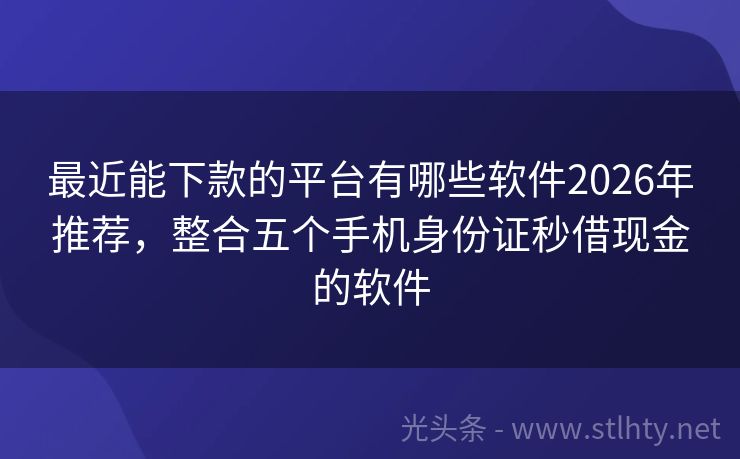 最近能下款的平台有哪些软件2026年推荐,整合五个手机身份证秒借现金的软件 “最近能下款的平台有哪些软件?”这是近期许多网友的疑惑,在金融市场上,优秀的借款平台多如繁星,今天我就为大家推荐几个值得一试的平台,下面,让我来为大家详细介绍五个热门最近能下款的平台有哪些软件。 2026年的最近能下款的平台有哪些软件有:钱鼓鼓速借、掌上贷、爱贷借款、安心Pro钱包、现金蜜蜂等。 一...