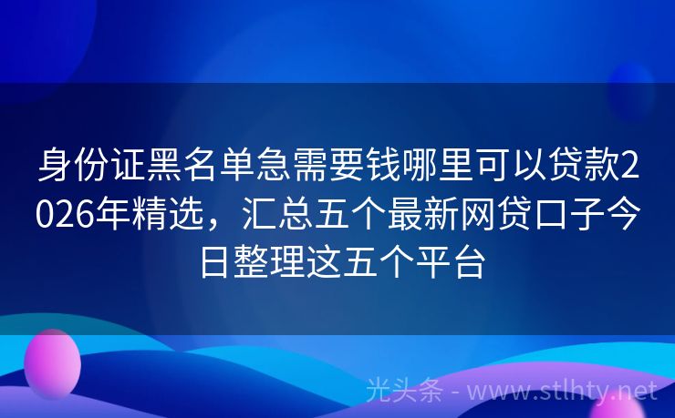 身份证黑名单急需要钱哪里可以贷款2026年精选,汇总五个最新网贷口子今日整理这五个平台 大家好,今天我来给大家聊聊“身份证黑名单急需要钱哪里可以贷款”,相信很多人在急需资金的时候,都会想到通过微信借款,那么哪些平台在微信上最容易下款呢?我将为大家详细介绍五个身份证黑名单急需要钱哪里可以贷款,让你轻松借款无忧! 2026年的身份证黑名单急需要钱哪里可以贷款有:现金贷易、东方易贷、借款宝速...